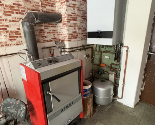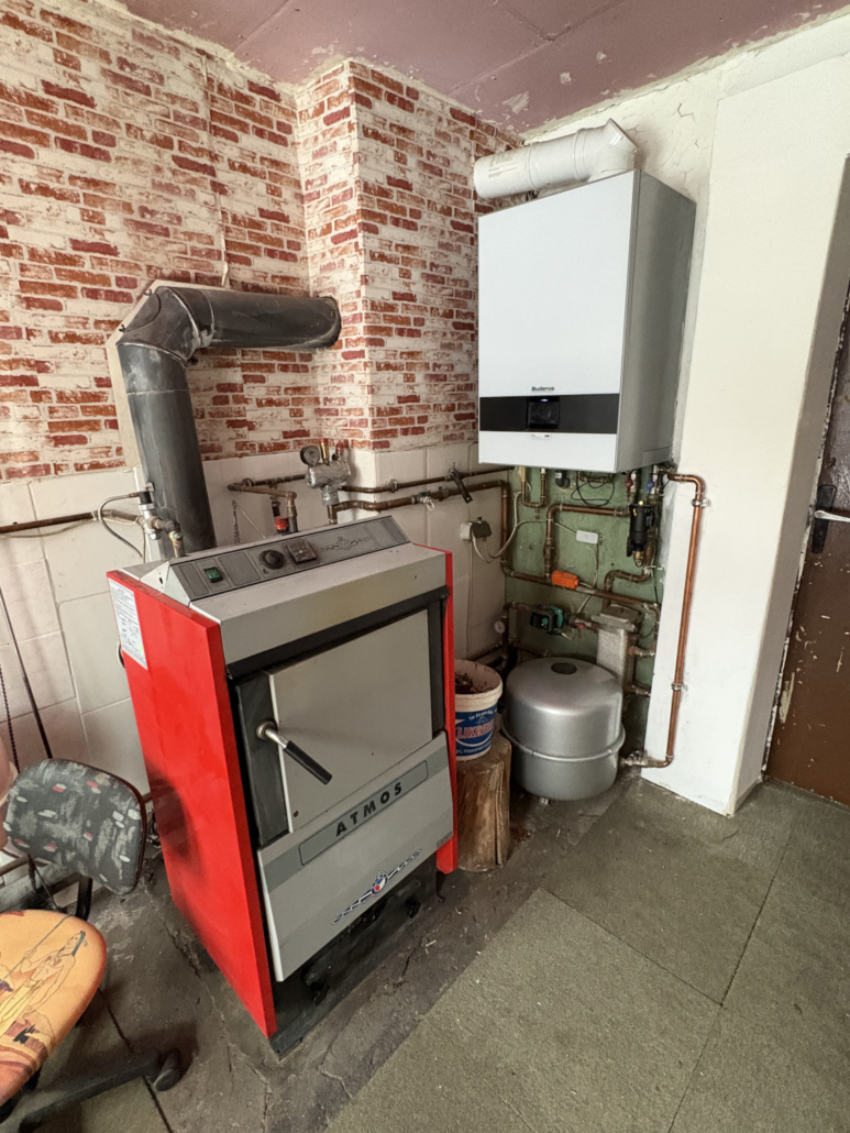 Die Heizung des Gebäudes wird durch die bereits erwähnte Flüssiggaszentralheizung realisiert, zusätzlich kann Diese durch eine nebenstehende Holzheizung (Bj.2005) bei Bedarf kombiniert werden. Weiterhin stehen in den unteren Wohnbereichen 2 Kaminöfen zur Verfügung,