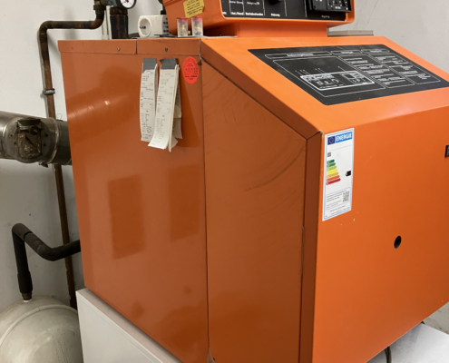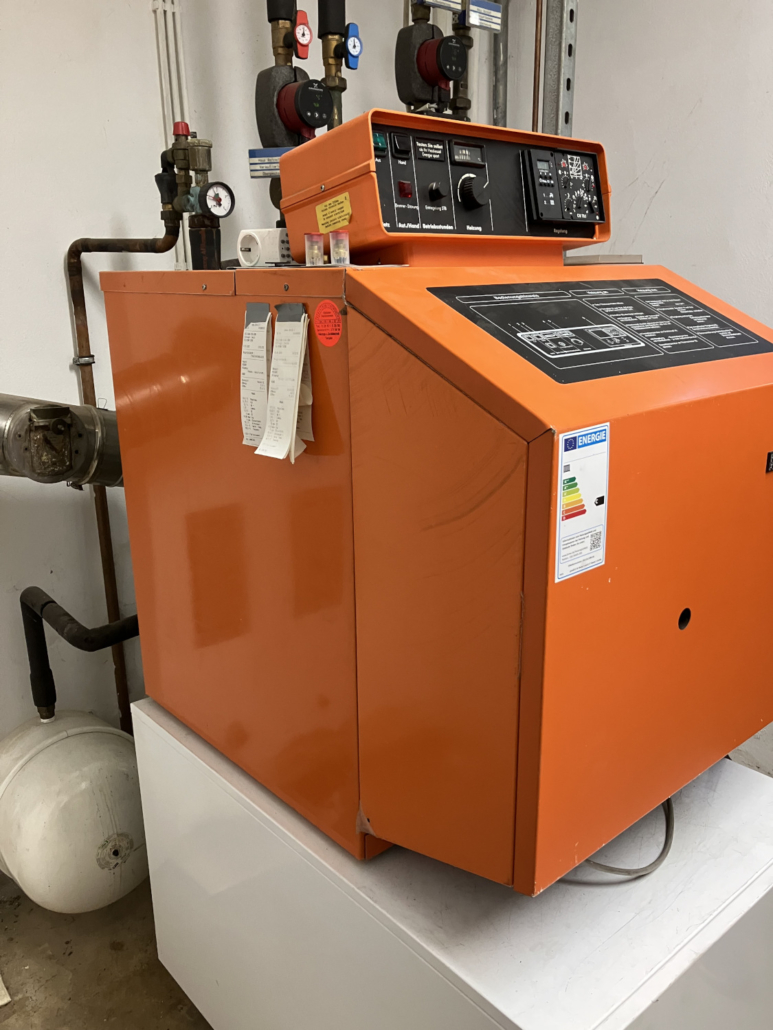 Die Heizung des Gebäudes inkl. Warmwasserbereitung erfolgt mittels einer Ölzentralheizung, im Erdgeschoß über eine Fußbodenheizung, ansonsten mittels Radiatoren. Vorhandene Iso-Fenster verfügen über elektrische Jalousien.