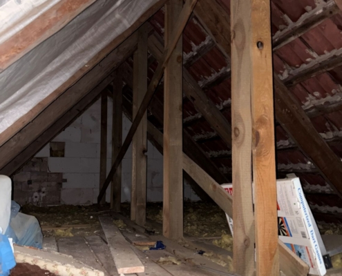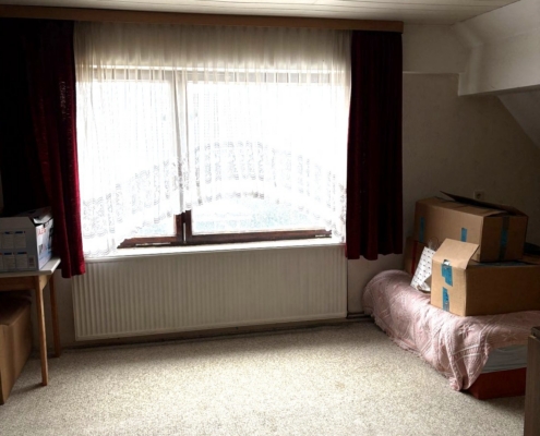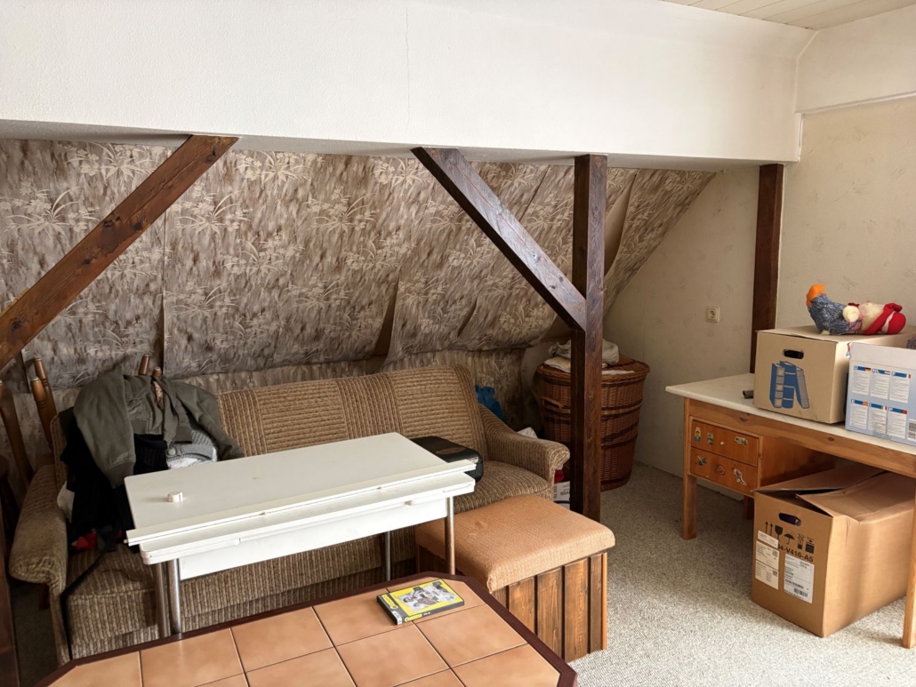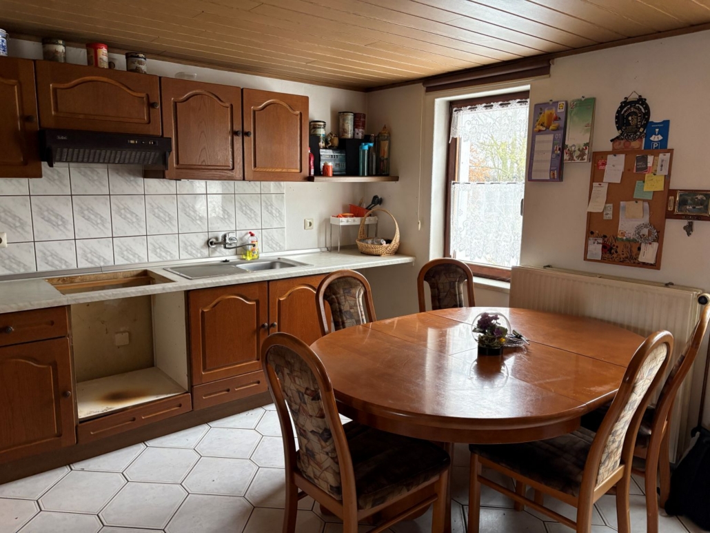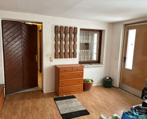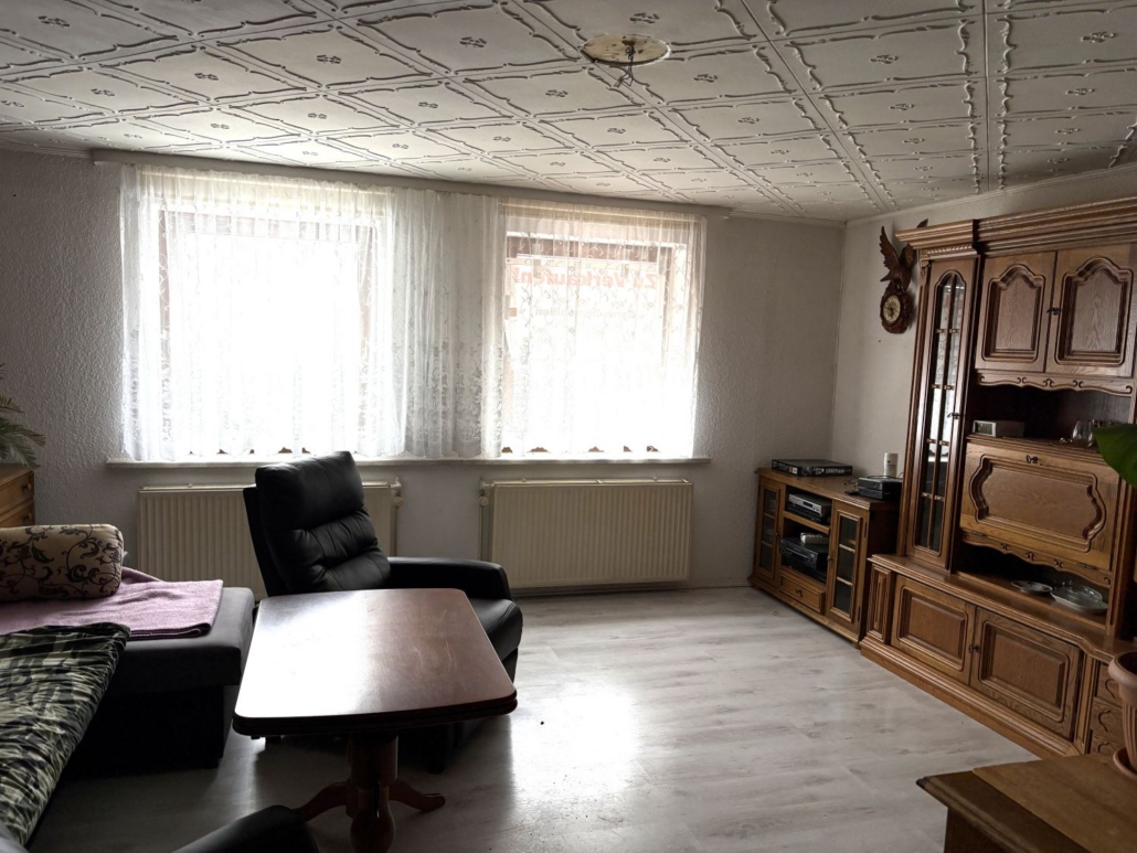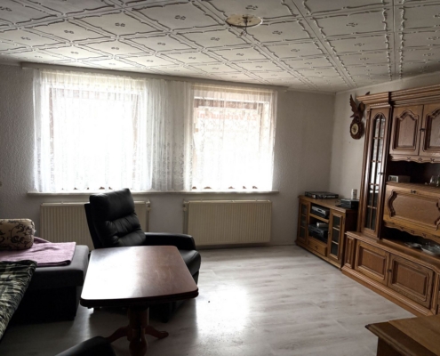 Das Wohnhaus: Das vermutlich als Siedlerhaus nach 1945 erbaute Gebäude steht mit einer Wohnfläche von etwa 100 m² im Erdgeschoß (2 Zimmer, Küche, Bad, Eingangs-und Flurbereich) und weiteren ca. 50 m² ( 2 Zimmer, Flurbereich) im Dachgeschoß zur Verfügung. Eine Teilunterkellerung mit etwa 18 m² beinhaltet den Warmwasserbereiter der Gasheizung und ankommende Anschlüsse mit Zähleinrichtungen.