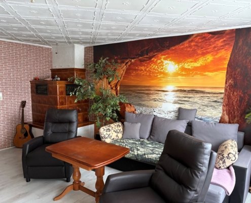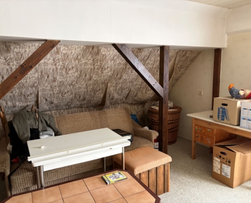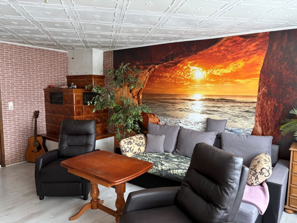 Die im Wohnzimmer befindliche Kachelofenluftheizung ist derzeit nicht einsatzbereit, hier müßte der Brenneinsatz getauscht werden oder generell ein Kaminofen zum Einsatz kommen.