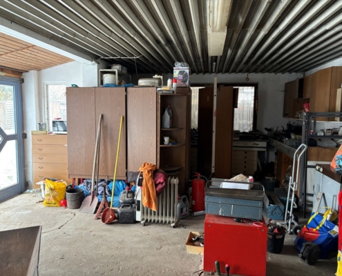 Eine am Wohnbereich angrenzende Werkstatt mit etwa 42 m² steht dem Hobbyschrauber für unterschiedlichste Aktivitäten zur Verfügung.