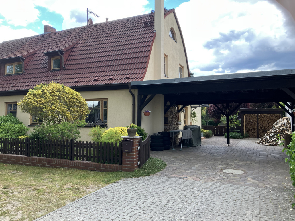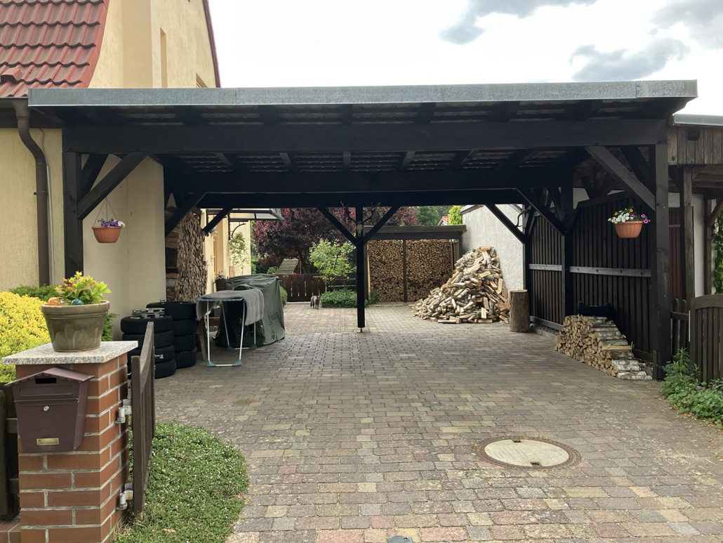 Nebengelass: Ein nebenstehender Doppelcarport und Geräteschuppen sollten weiterhin gut verwendbar sein.