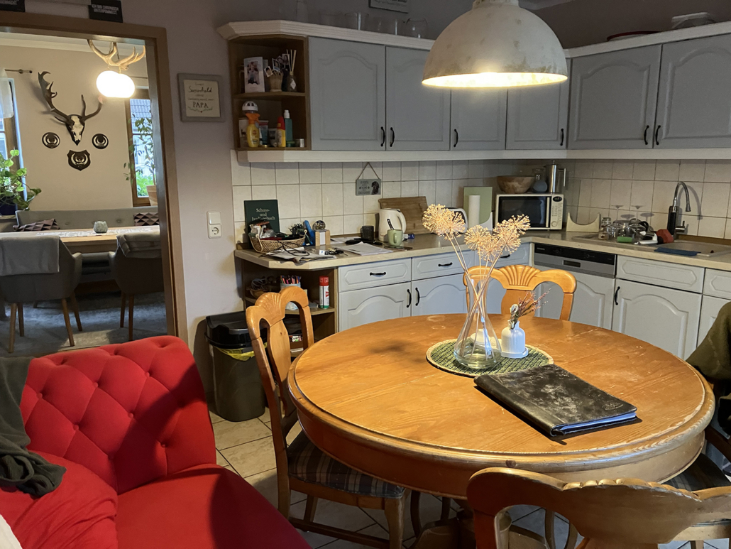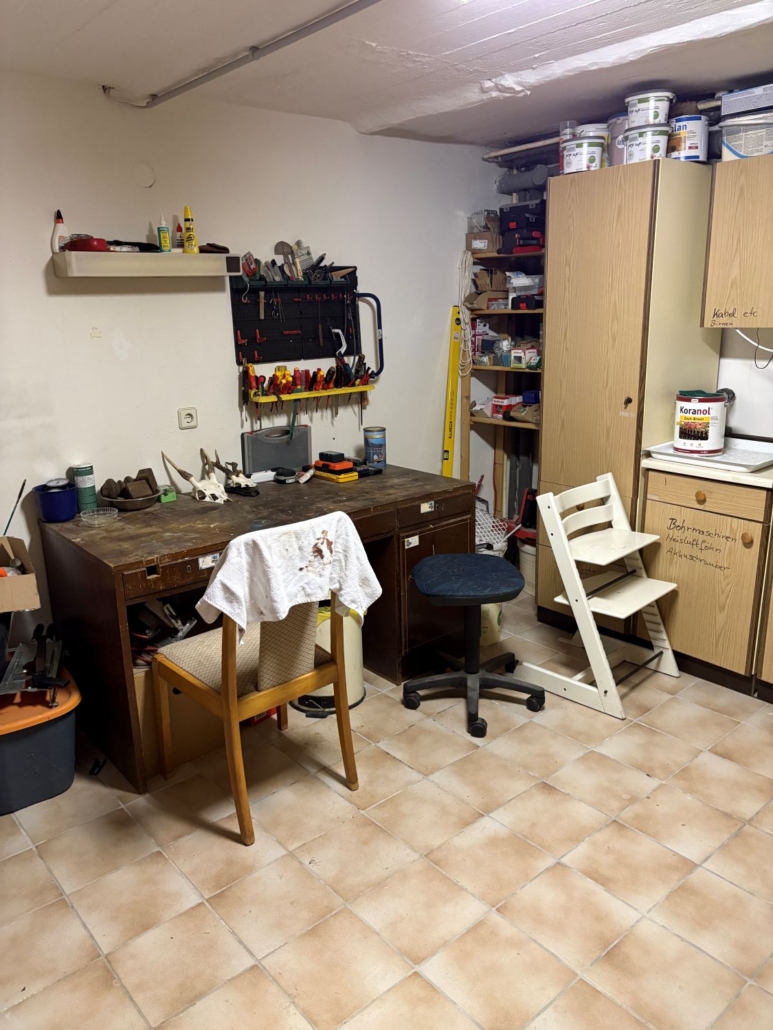 Eine vorhandene Teilunterkellerung mit Pufferspeicher und deren Regelung, Hauswirtschaftraum, Werkstattbereich, Duschbad/WC, ankommenden Anschlüssen ist hofseitig und vom Wohnbereich zugänglich.