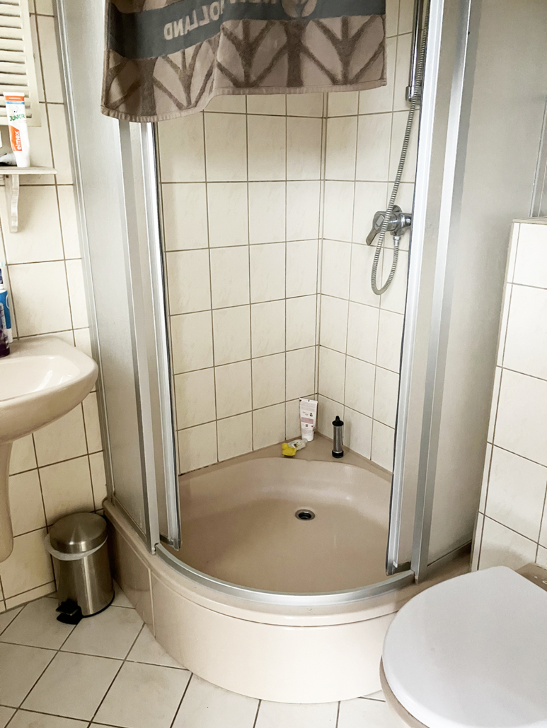 Die Warmwasserbereitung für das Anwesen erfolgt mittels Durchlauferhitzer (24 KW/Keller)