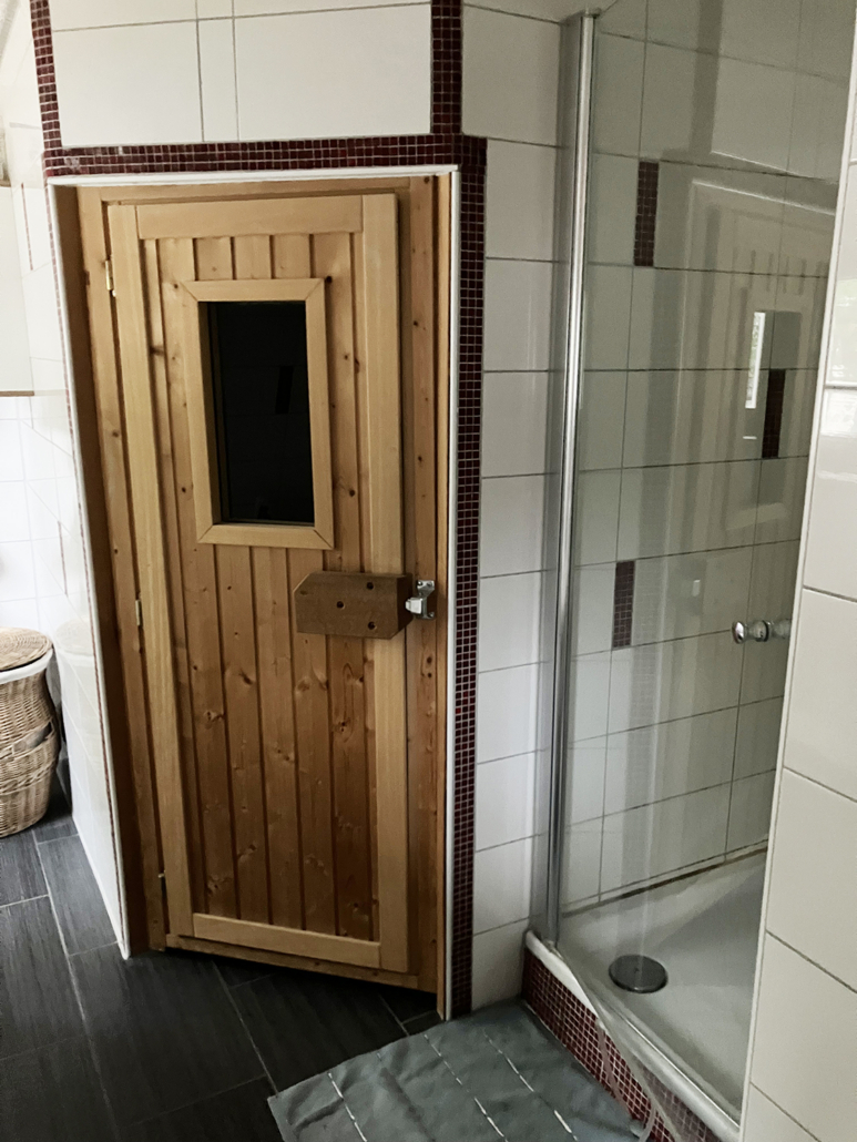 Weitere ca. 53 m² befinden sich im Obergeschoß mit Kinderzimmer, Schlafzimmer (mit Terrassenzugang) und einem großzügigen Dusch-Wannenbad/WC mit integrierter Sauna. (infrarot/derzeit ohne Ofen).