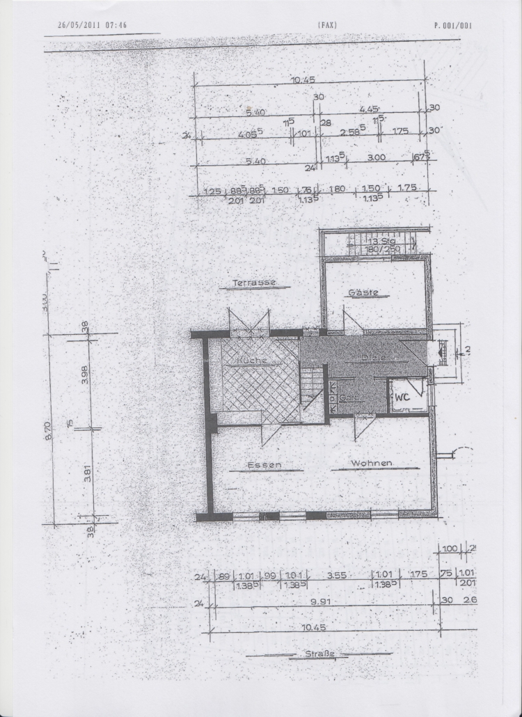 Von der Wohnfläche entfallen ca. 94 m² auf das Erdgeschoß mit Gästezimmer, Küche mit Zugang zur Hofterrasse, Wohn-Esszimmer, Duschbad/WC, Garderobe und den Flurbereich.