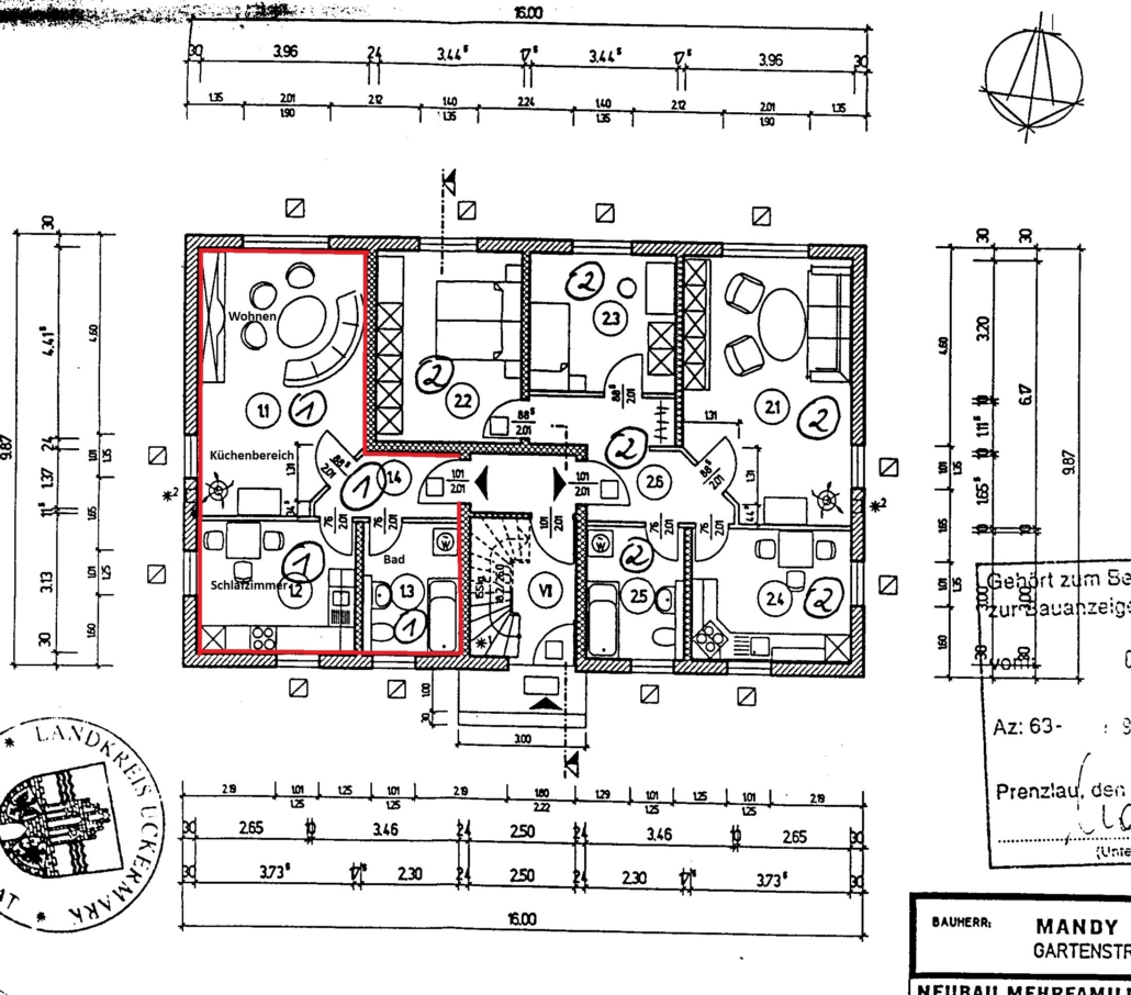 Lage: Das beschriebene Angebot befindet sich in ruhiger Siedlungslage Templins im Bad Lippspringer Ring. Das Gebäudeensemble entstand nach 1999 in verschiedenen Bauausführungen. Im vorliegenden Angebot handelt es sich um eine Wohnung in einem Mehrfamilienhaus mit insgesamt 6 WE. Zugehörig ist ein kleiner Außenbereich mit Sitzecke (vom Wohnzimmer erreichbar), ein Abstellraum außerhalb des Gebäudes und ein PKW-Stellplatz.